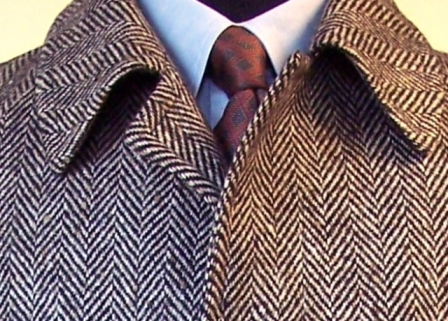 The other jumping off point for this article is a recent look at innovations from sharkskin where I only had a cursory look at the original sharkskin textile, the grand daddy of them all, the fabric that is the foundation of many swanky suits. I speak of course of woven sharkskin. Between that and the occasion to wear a suit recently, I thought I’d take a look at simple weaves from men’s suiting that have animal names. Here are three of them: Sharkskin, Herringbone, and Houndstooth: