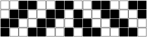As far as weaving setup, what you see is what you get. Warp and fill are solid contrasting colors, often warp is black, fill is white. Commonly its woven with thicker yarns that pronounce the pattern. Here’s the setup: