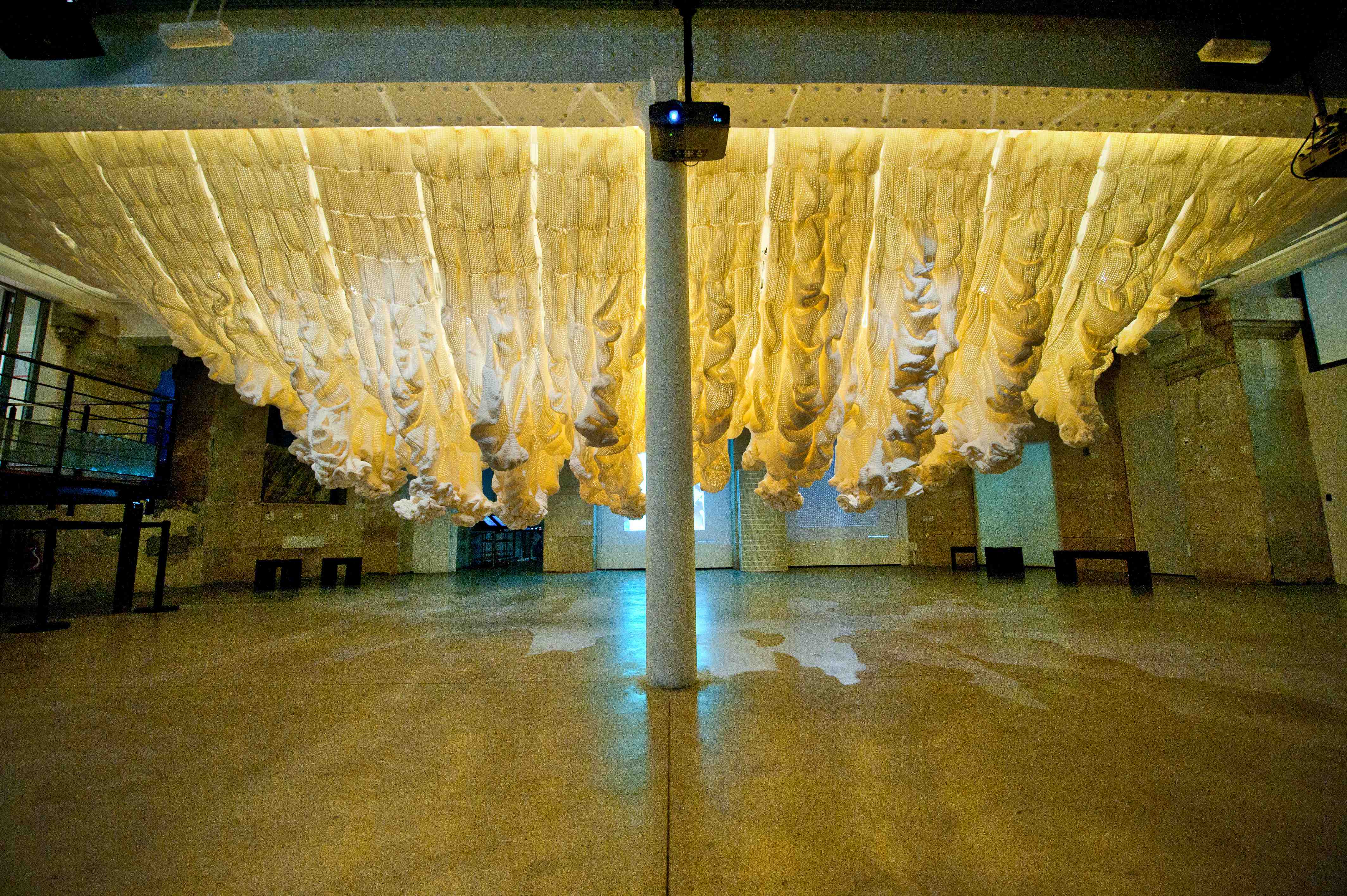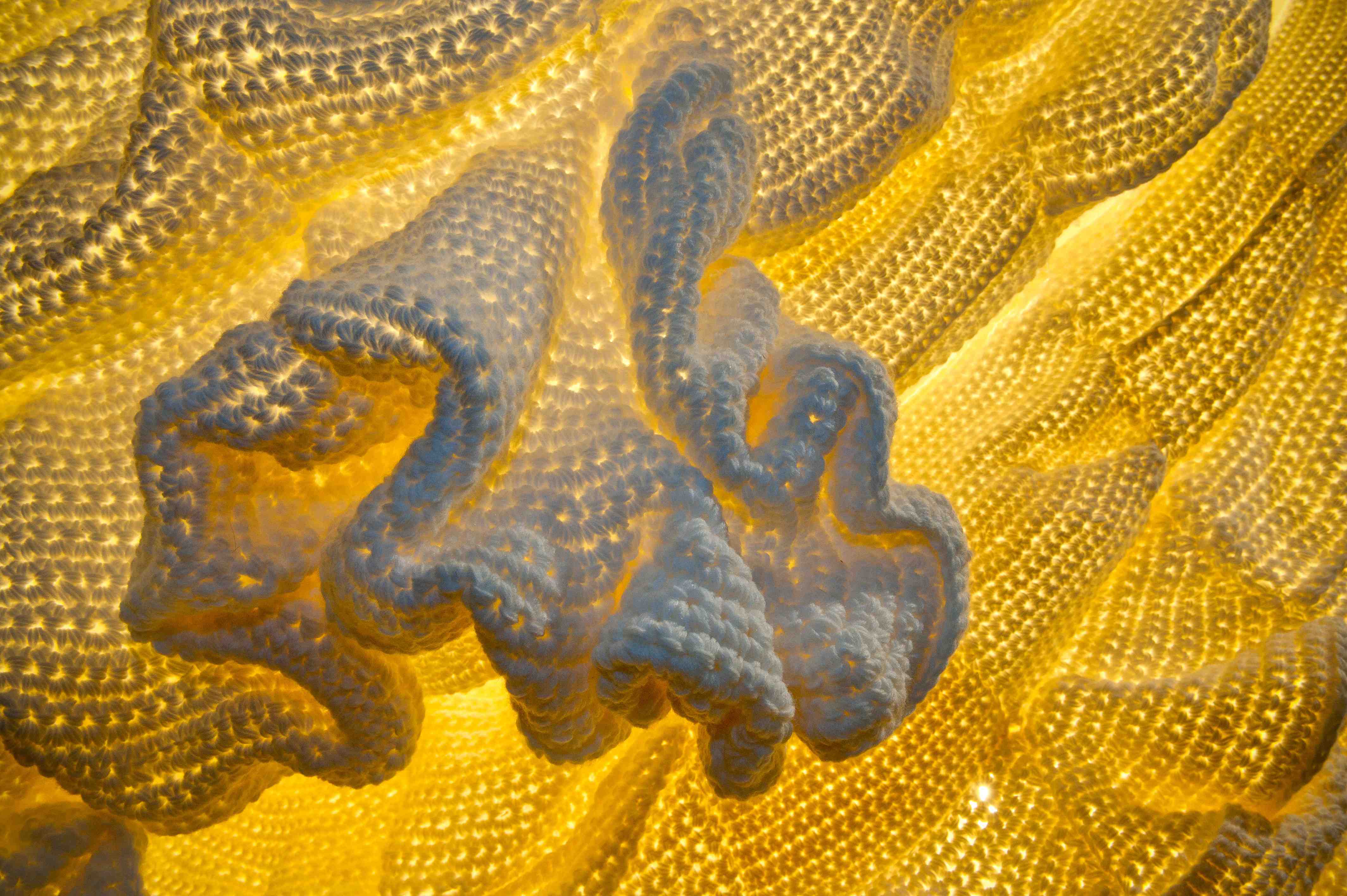 Above is an image from Artist Ciro Najle’s crochet model of cummulus clouds based on his research around fog collecting devices. Below is a smattering of images from various projects. Many of the projects have a textile biomechanical component and all are intellectually stimulating. I encourage you to visit the website. I, for one, wish I could hop on a plane right now to visit.