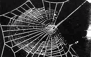 I’m not talking about Ziggy Stardust and the Spiders from Mars. I’m talking about Spiders that were tricked into getting cranked up off of flies injected with various ‘recreational’ drugs. What’s interesting here is the spider’s determination to make a web, but impaired organizational skills. Disturbing that the caffeine is one of the most disruptive. The bonus picture in color is a web made by spiders under the influence of drugs injected by parasitic wasps.